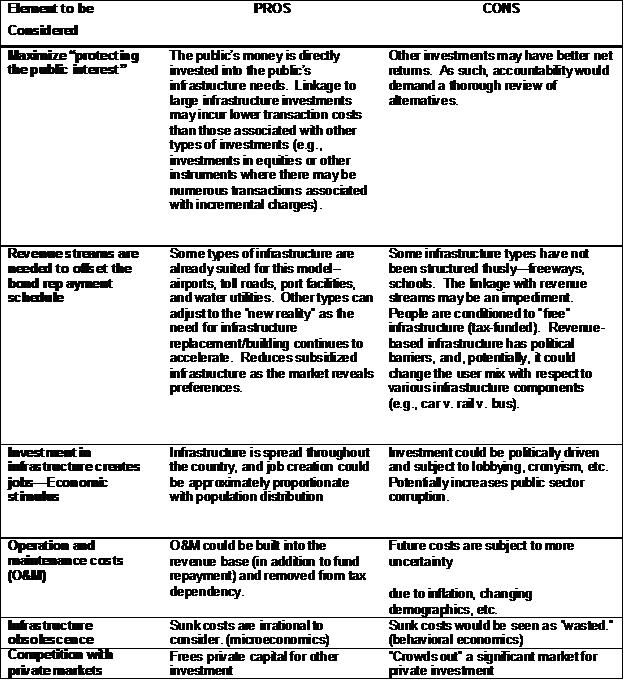 Elements to be Considered with Respect to Investing the Social Security Trust Fund in America’s Infrastructure